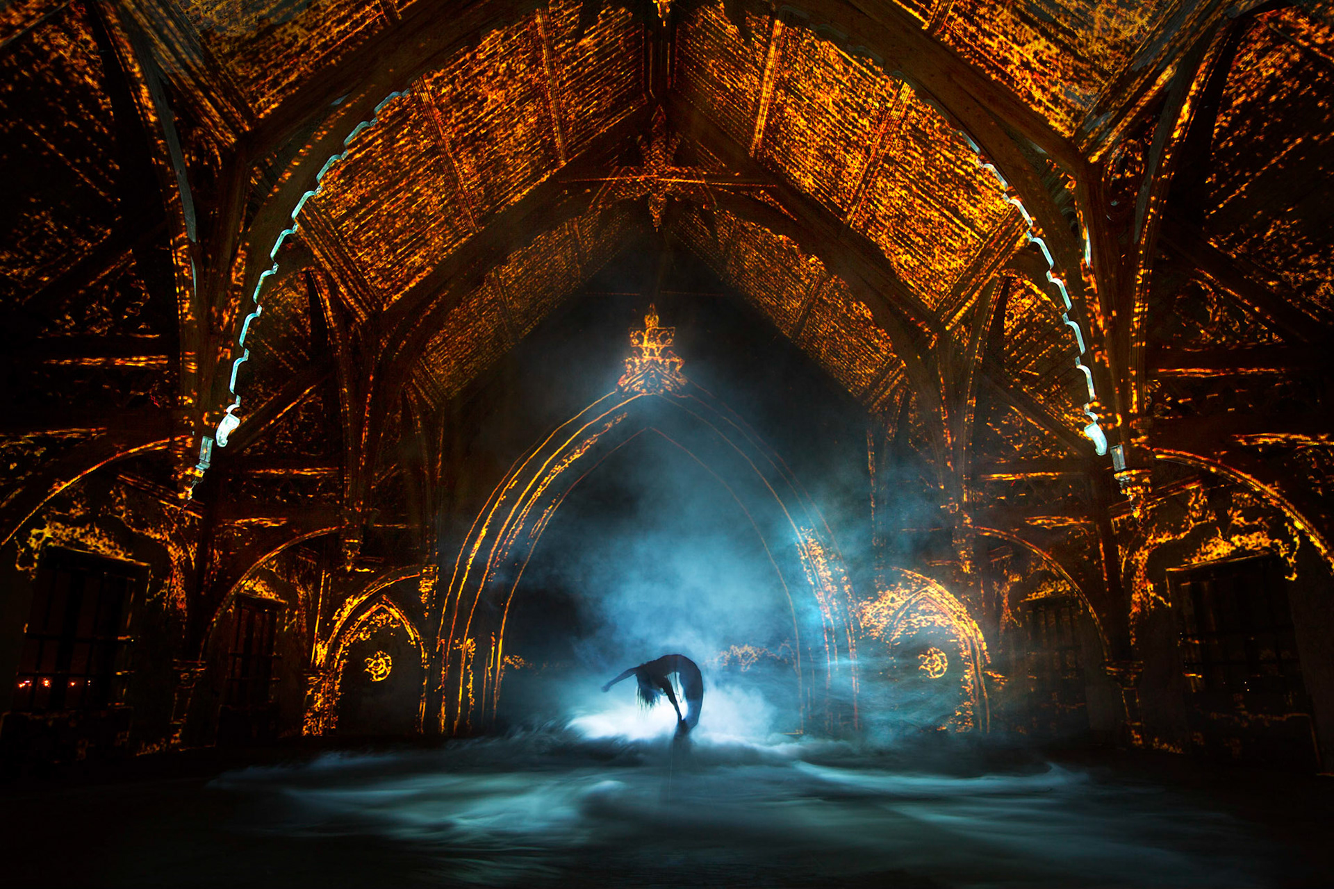 An empty church, a ballet dancer, a smoke machine and some big projectors...
